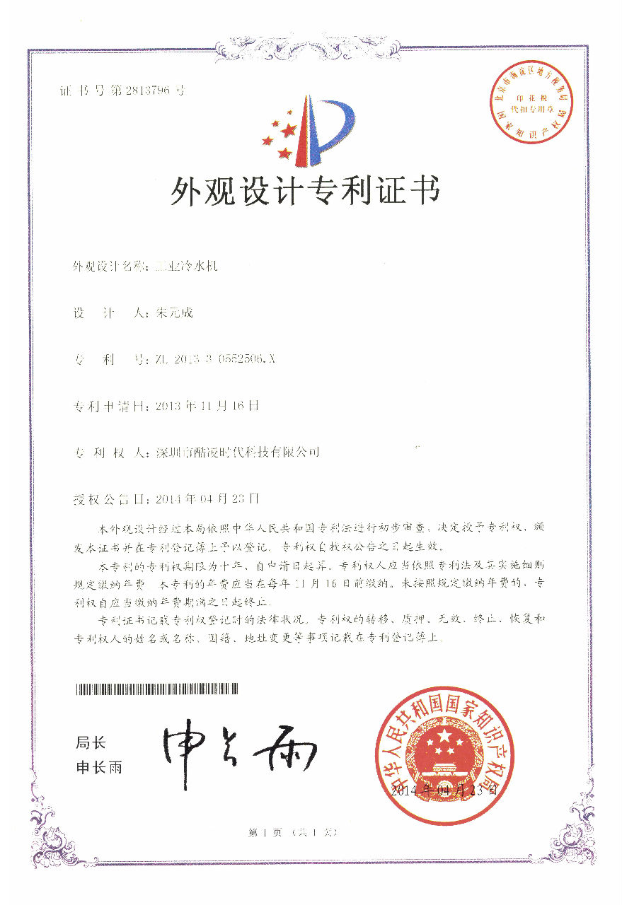 外觀(guān)設(shè)計(jì)專(zhuān)利證書(shū)-1